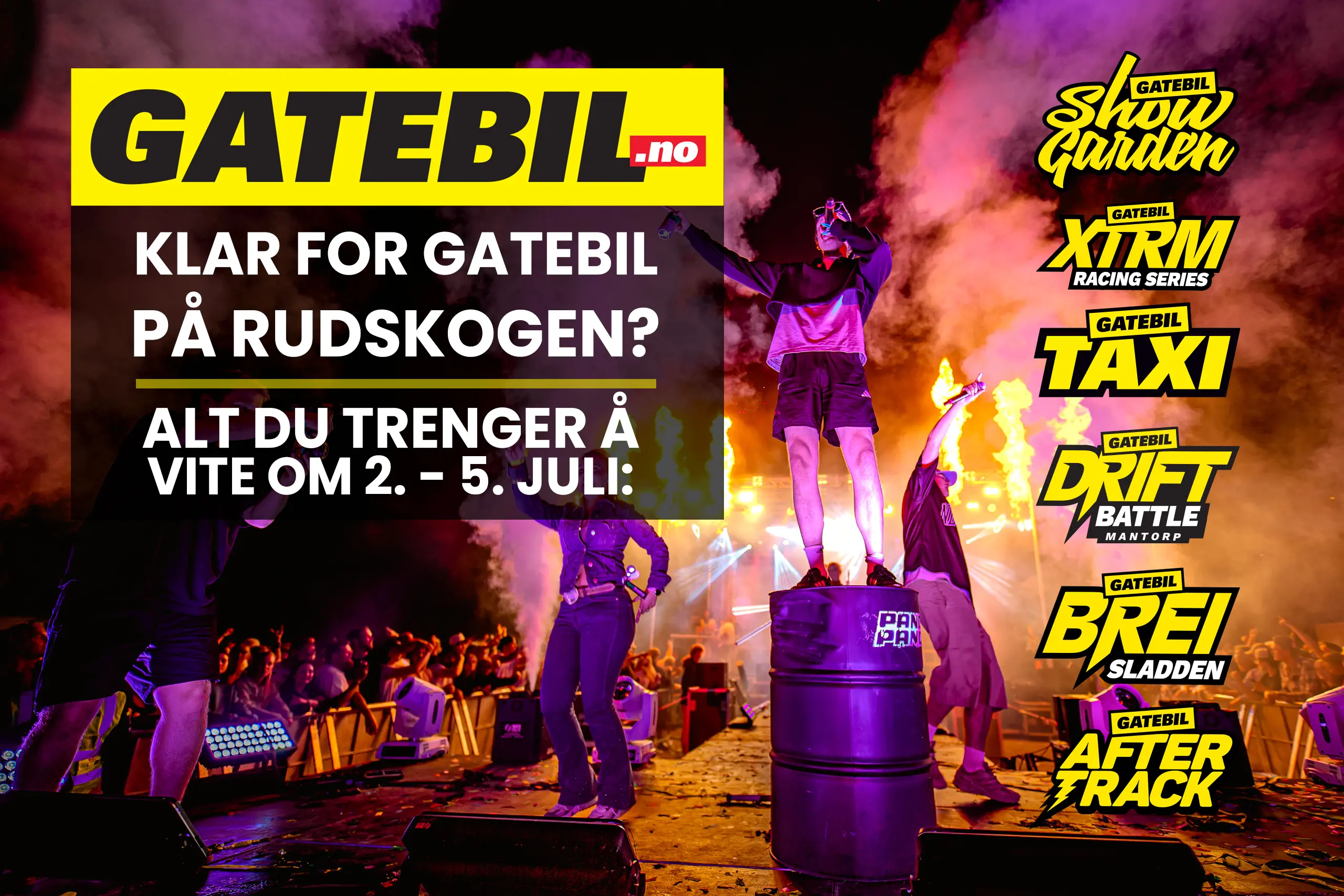 Er du klar for årets råeste festival? Gatebil Juli går av stabelen 2.-5. juli 2026!